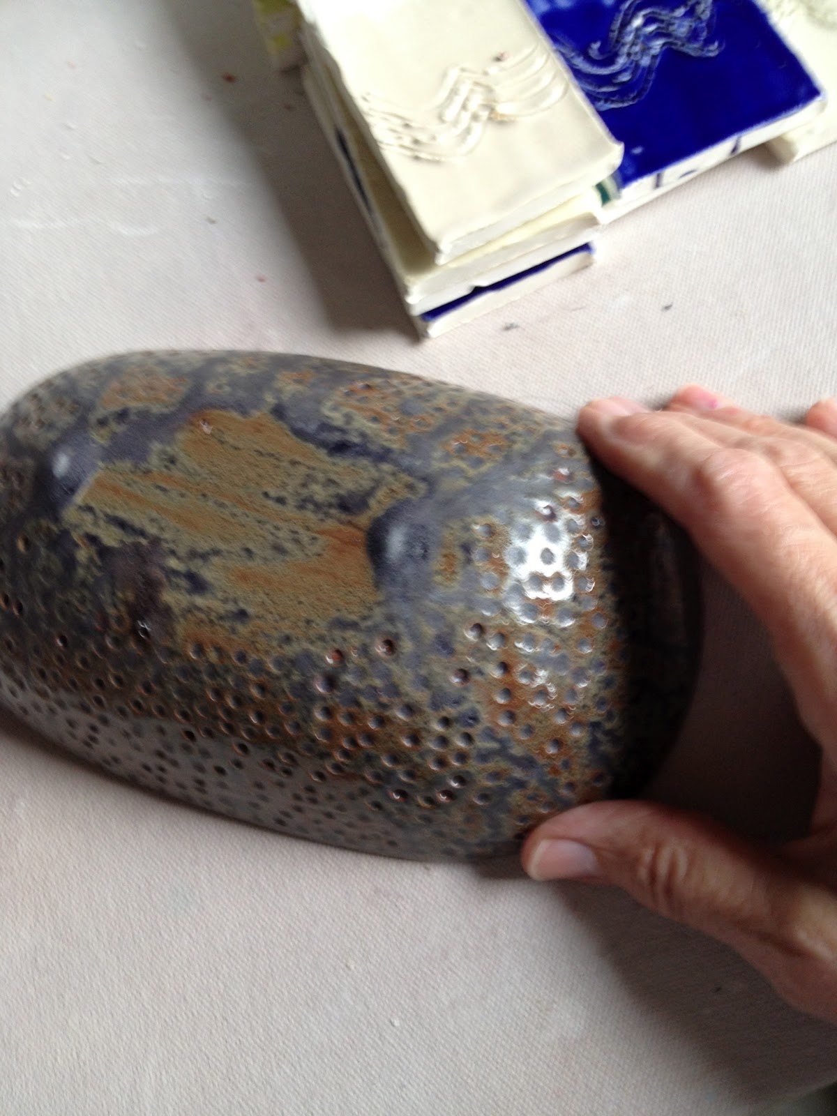 I guess I have been working on things, but it feels so slow right now. I'm learning plenty in my ceramics classes...most of it a bit humbling. It really teaches me to be in the process and appreciate all that I am learning. I love three dimensions, but constructing them and then glazing things with lag times in between is very different from my usual flow. I've also been working on this big pink and orange thing for so long. I'm calling it Ode to 1967 because of that hippie color combo. I just can't get the colors right. It's good in the studio, but then when I take it into a normal room the color changes so dramatically! What the hell is that? When I really feel lost I just make circles. And no making fun of that phallic spoon! I've already been teased plenty.